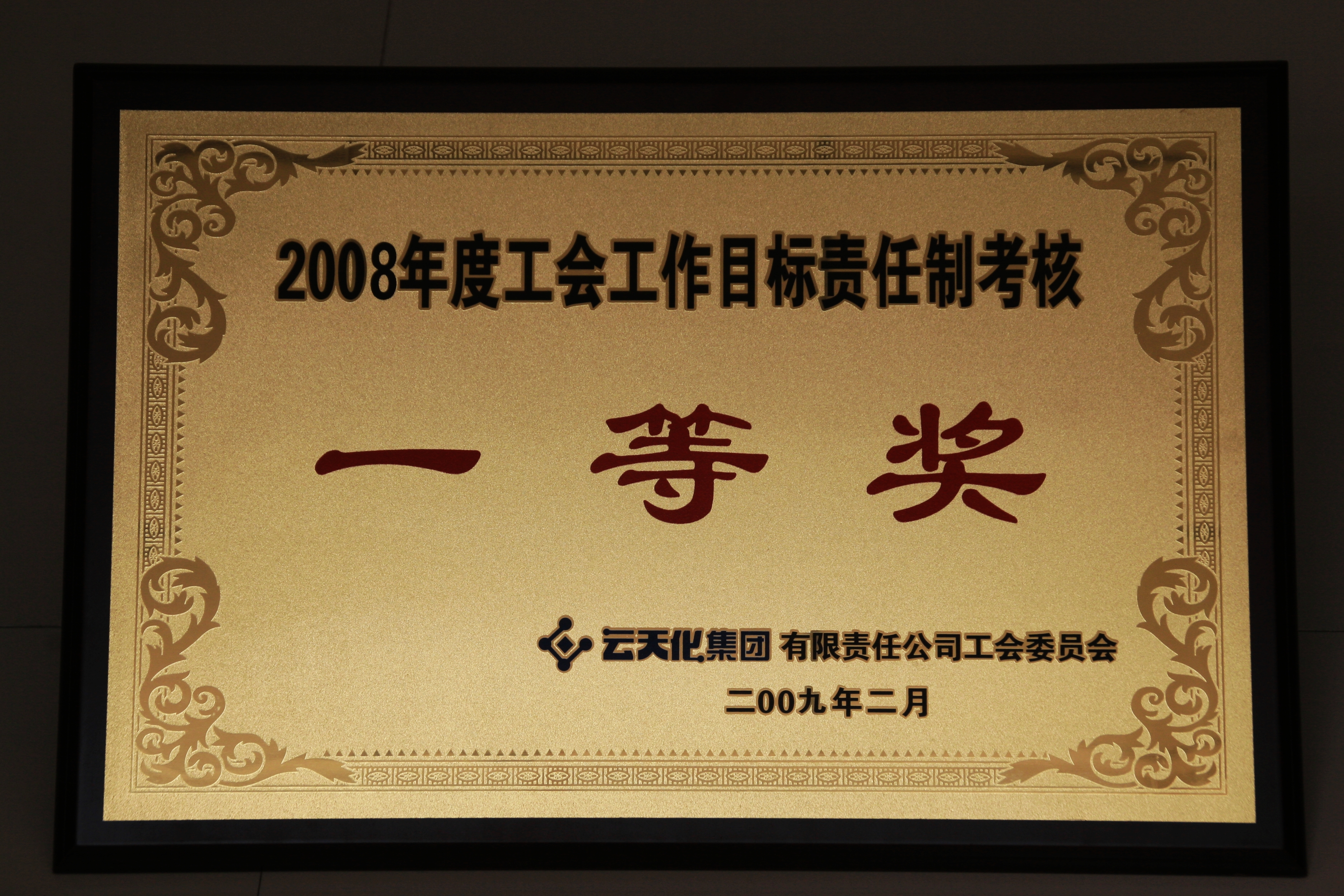 在最近召开的云天化集团工会三届三次全委会上,公司2008年度工会工作目标责任考核被评为一等奖,受到表彰。这是公司工会工作连续多年获得的荣誉。