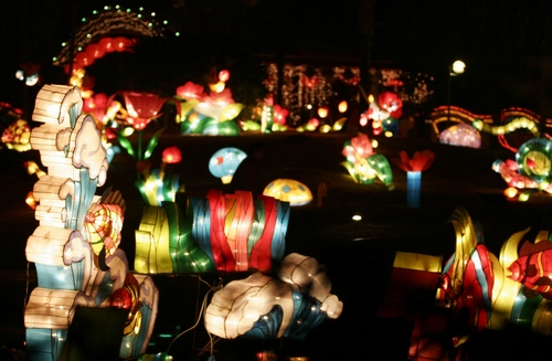 到了夜晚,华灯初上,小区则又是另外一番景象,散落于公园各处的主题灯组将夜晚装点成梦幻般的童话世界,由公司员工们亲手制作的千鹤祈福灯组向人们表达着对新一年的美好愿望和祝福。漫步的游人,也在这小区的夜晚感受了春节里一份别样的谐和与美丽。