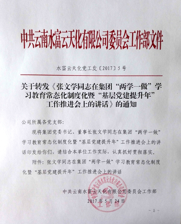 自5月中旬集团召开“两学一做”学习教育常态化制度化暨“基层党建提升年”工作推进会以来,公司党委积极部署,要求所属各级党组织通过多种举措,认真学习宣传、贯彻落实好集团党委书记、董事长张文学讲话精神。