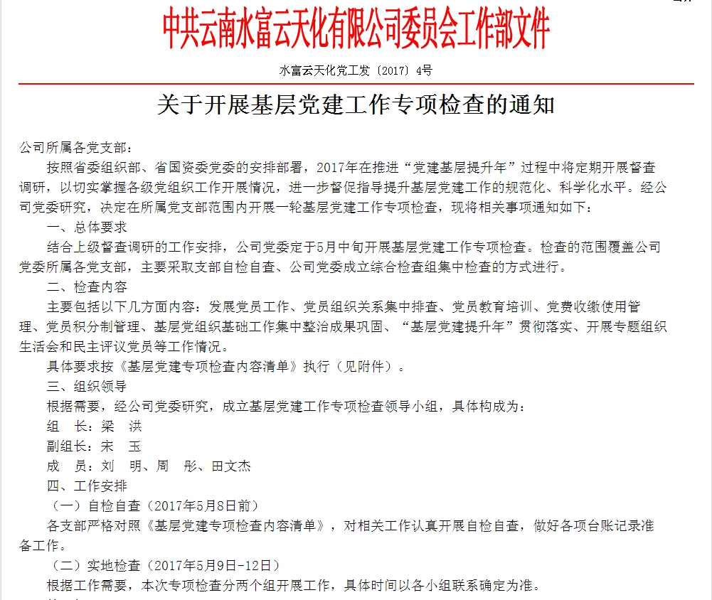 为加强基层党组织建设,切实掌握各级党组织工作开展情况,进一步督促指导提升基层党建工作的规范化、科学化水平,5月9日至17日,公司党委在所属党支部范围内组织开展基层党建工作专项检查。