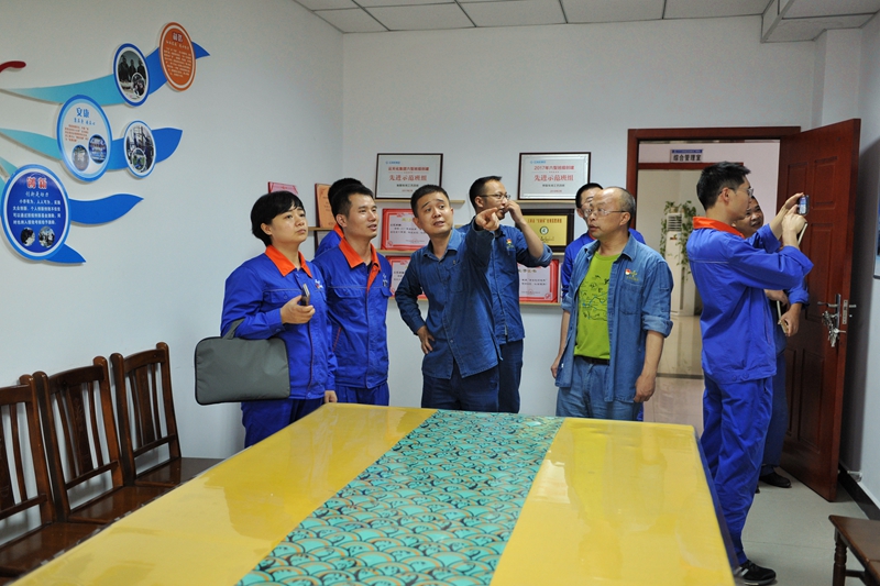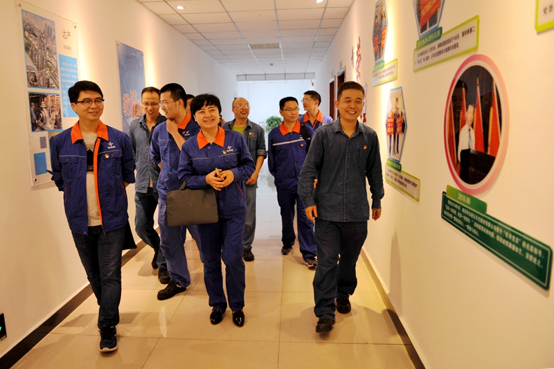 唐忠倩一行首先来到水富云天化甲醇车间党支部,现场参观了解甲醇党支部文化走廊、党员创新工作室、班组活动室建设的初衷、意义和取得的成效等。双方人员边看边交流,对于有特色的做法和亮点便认真交流细节,对于有共性的问题大家会各抒己见,分享本单位的工作经验等。