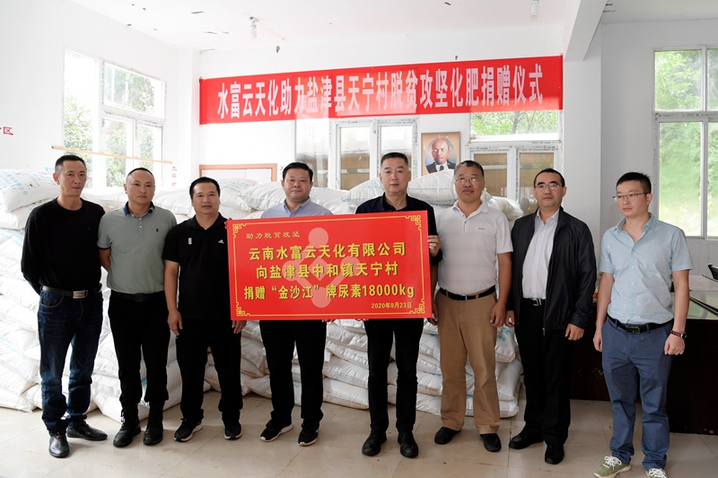 9月23日,公司党委书记梁洪带队来到盐津县中和镇天宁村,看望慰问公司派出的两名驻村工作队员,实地查看了乡村公路建设、牛场改造、农村活动场所三个重要扶贫项目的进展情况,同时向天宁村捐赠“金沙江”牌尿素18吨。