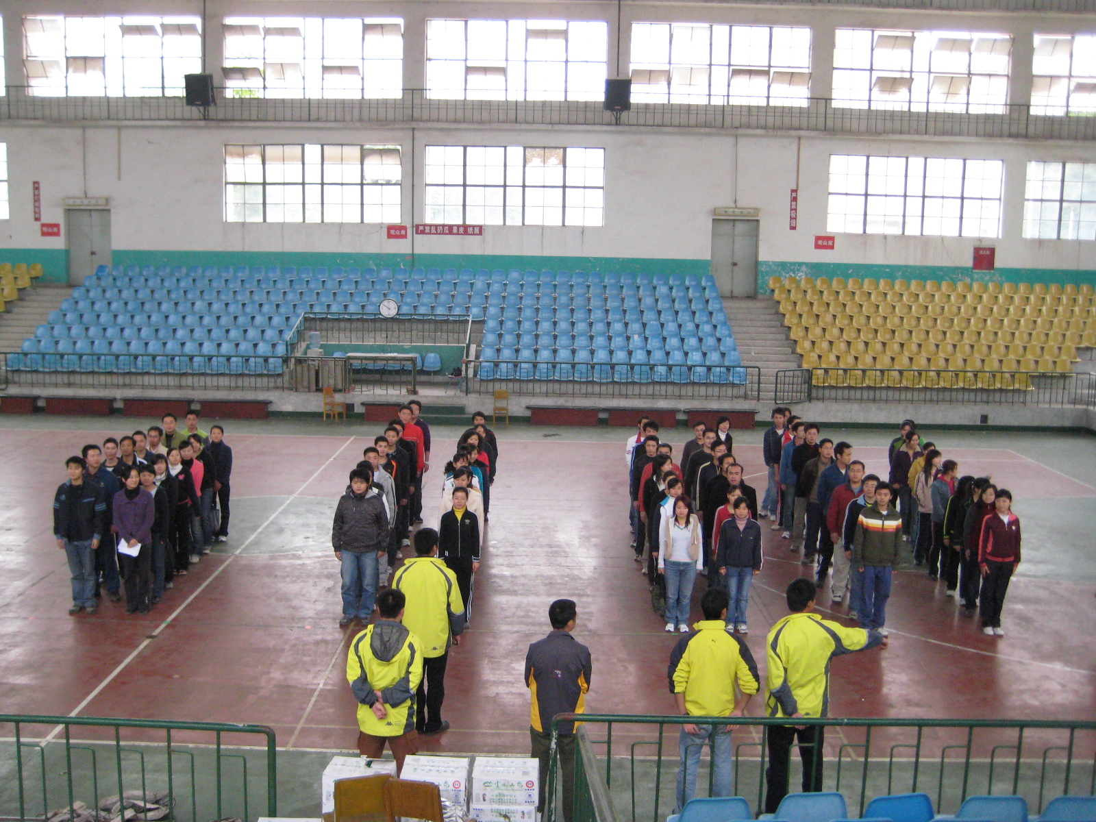 下午一点,工会体育馆内响起了哨声,代表们个个精神抖擞、轻装上阵,准备迎接挑战。首先,拓展中心总教练简单讲到了拓展培训的起源、定义以及分类,并举例说明团队沟通合作的重要性,生动的话语鼓动了现场的每一位培训学员。之后,教官将培训学员随机分为五组,每一组均指定了一名带队教官,并分派了各队的团队建设任务。选队长、取队名、选队歌、编队舞、设计队棋,这是考验团队协作能力的第一个活动,瞬时场上忙的不亦乐乎。20分钟过后,一场精彩的成果展示赛在这个小小的体育馆内拉开了序幕,“红色风暴”、“橙色风暴”、“蔚蓝之星”、“蚂蚁队”、“凌云队”纷纷精彩亮相,分别向对手们展示了各自的得意成果,最终红色风暴对以其新颖的队歌和整齐的舞蹈赢得了开局的胜利!虽然观看输者做俯卧撑是场上唯一的战利品,但欢呼声还是一浪高于一浪,场上每一个队员的表现都充分证明了“谁也不是弱者”。