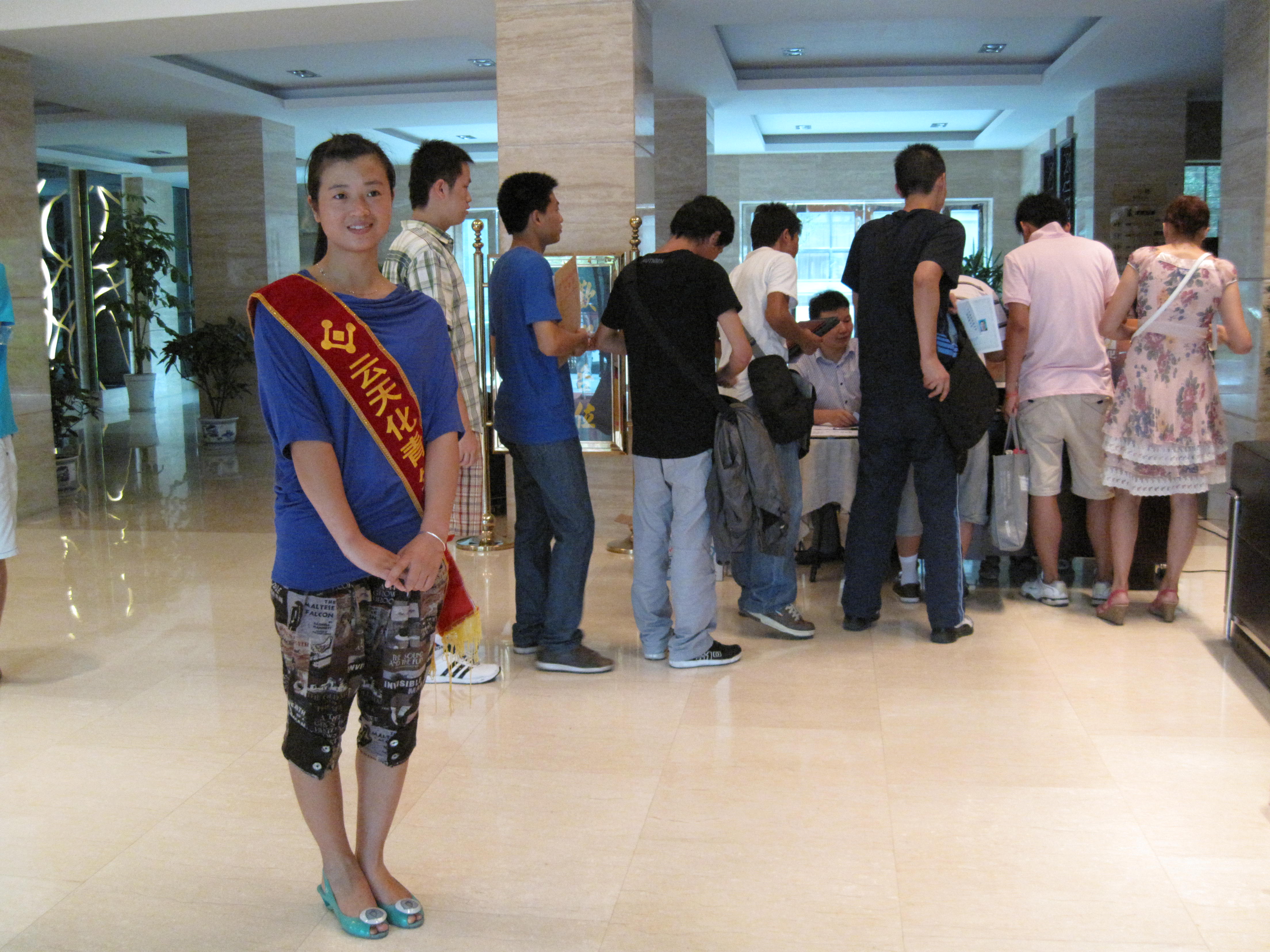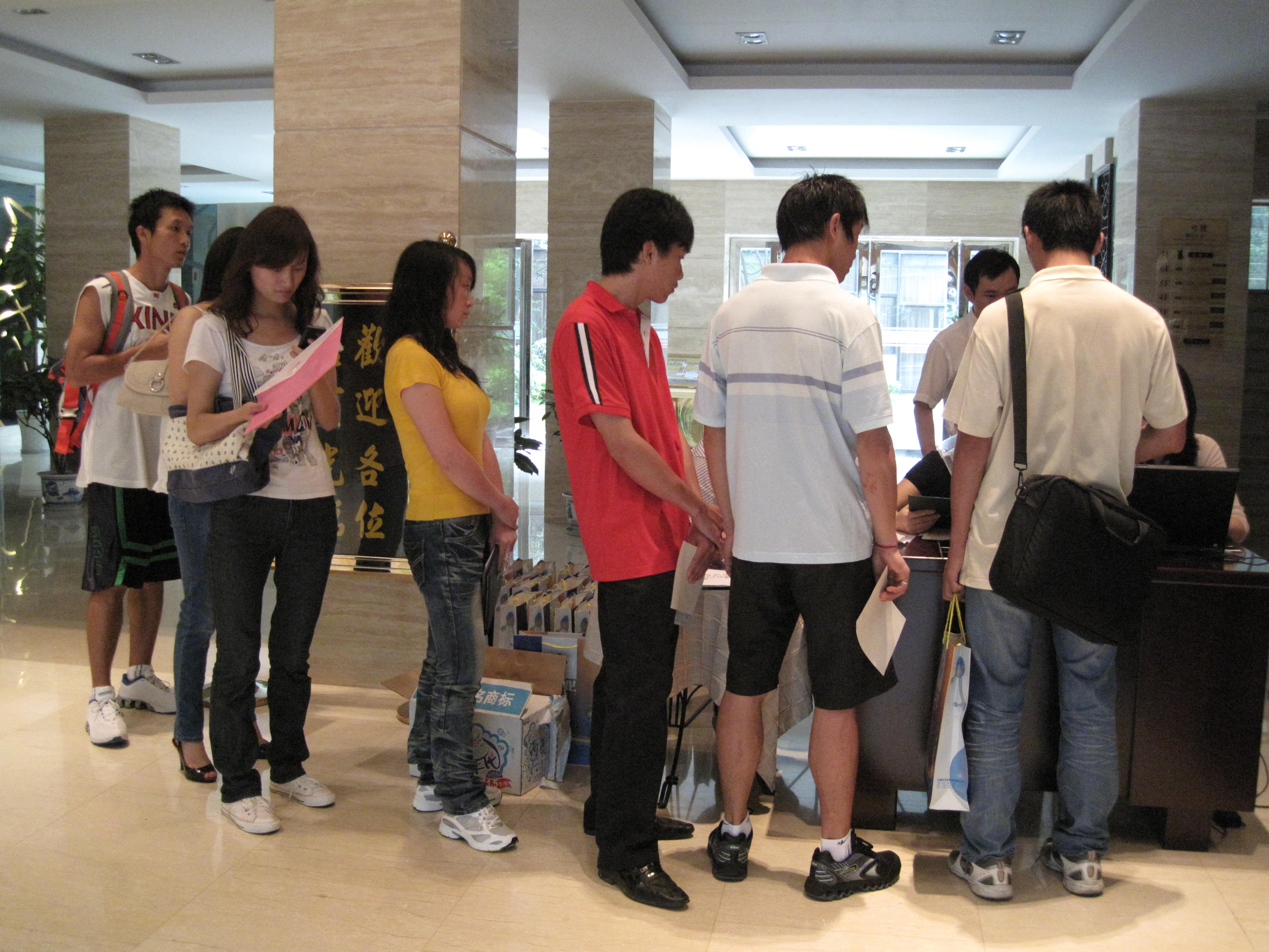 公司团委按照人力资源部的安排,对此次新员工报到工作高度重视,前期做了大量的准备工作,在报到当天精心组织志愿者,为新员工答疑解惑,引导报到流程,派志愿者在宾馆门口将新员工送至报到地点,同时将帮助他们快速有效的办完手续,送到住宿地点,让他们顺利入住公司为他们安排的寝室。