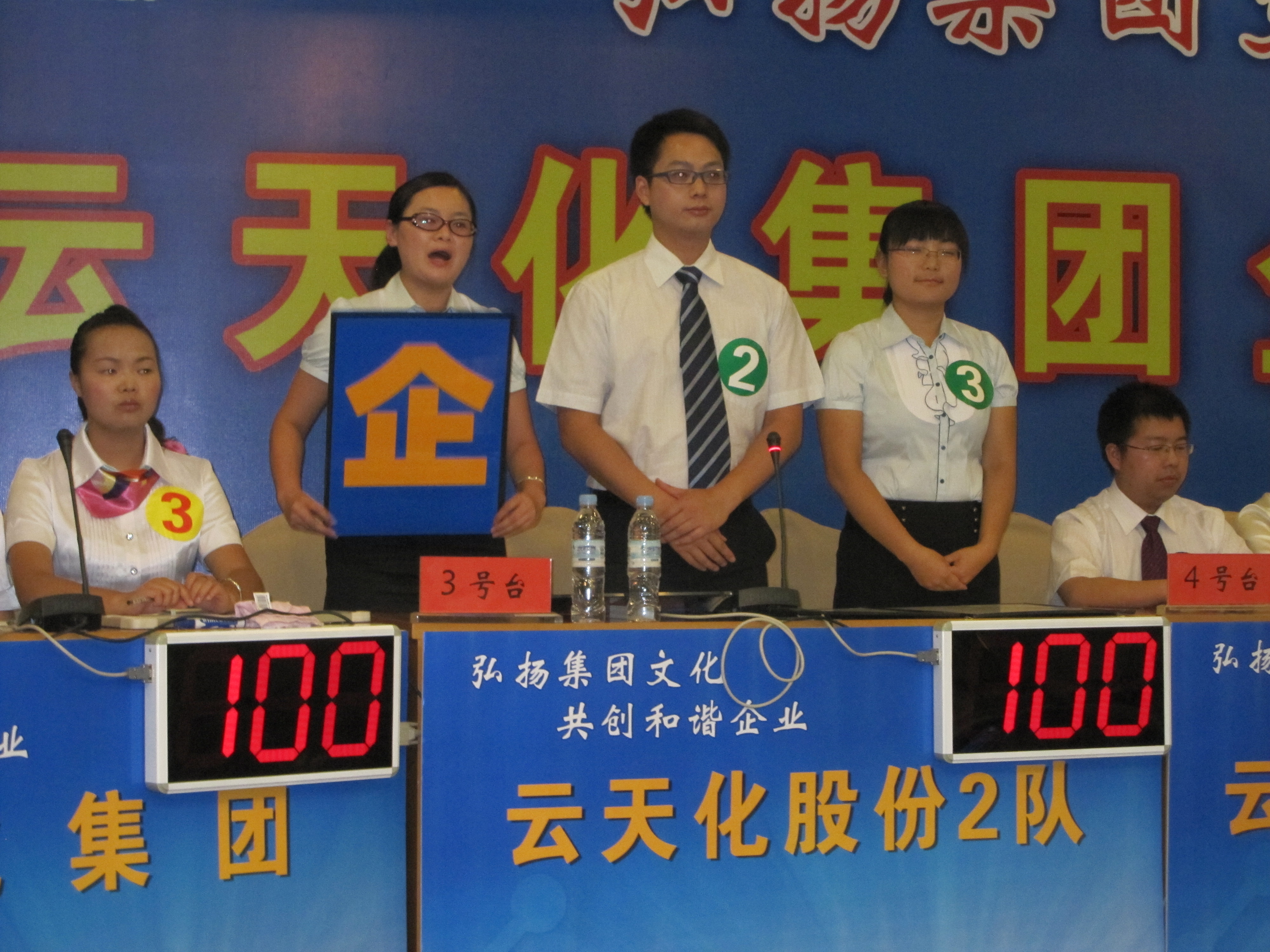 自云天化集团企业文化知识大赛开始以来,股份公司党委高度重视,公司团委及时组织选拔赛,选拔出一批优秀的选手。各参赛选手竭尽全力,克服炎热酷暑,进行集中学习和针对性的讨论。7月中旬在磷化集团、天安化工、云南盐化三地举行的预赛中,股份公司2支代表队从19支参赛队伍中脱颖而出,和其他6支获胜的队伍进入了决赛。