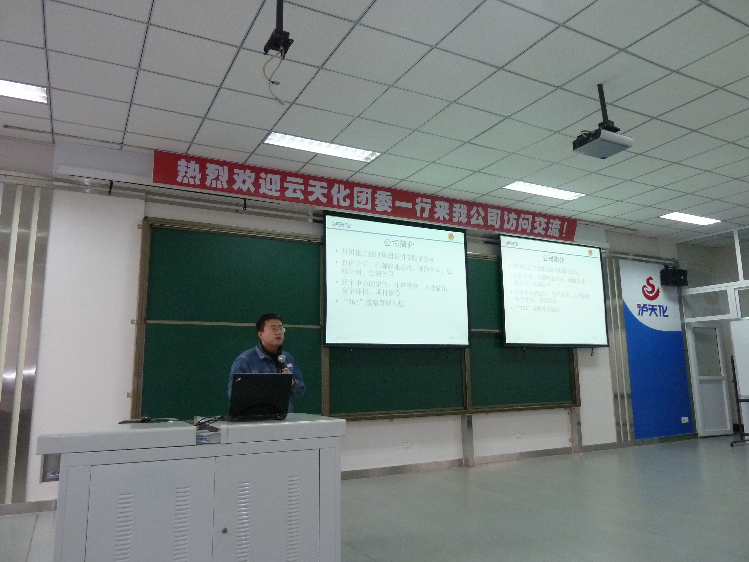 24日下午,参观团首先来到四川泸天化股份有限公司,在泸天化股份团委书记李志略的带领下,参观其公司展厅、了解发展历程及生产经营状况,并深入基层团支部参观了解泸天化的团建历史、团建特点和团建亮点。随后,参观团与泸天化股份各级团干进行了深入交流,特别是在双方亮点和难点工作方面,双方进行了具体做法和经验的共享,交流收到良好的效果。通过现场参观以及座谈交流,泸天化股份团委在青年安全示范岗、国家级青年文明号创建和标准化团支部建设等一系列特色工作的开展上给参观人员留下了深刻印象。