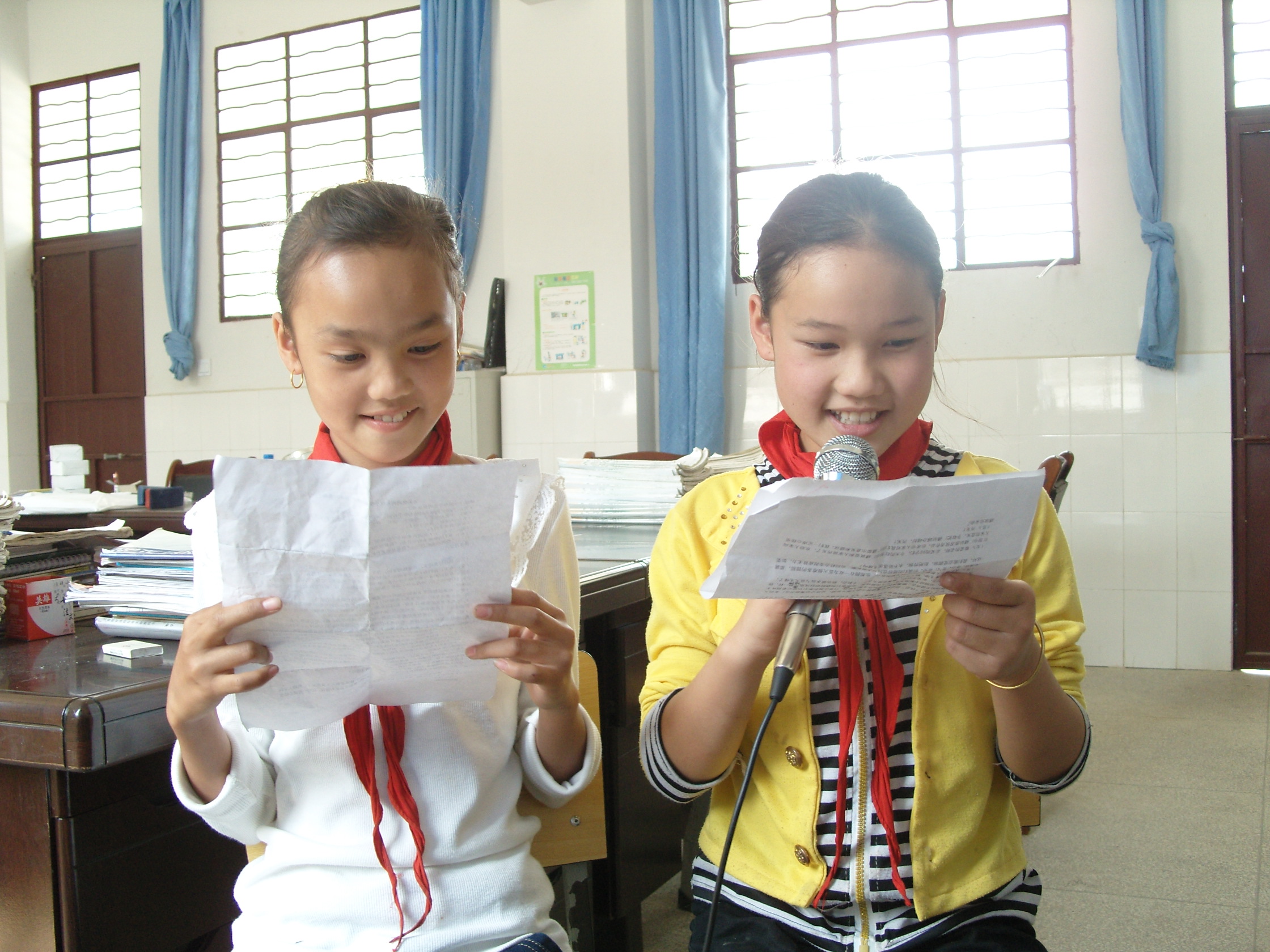 培训由志愿者挑选一篇小学生优秀作文让每名学生进行段落朗读,再从中选拔6名优秀的进行普通话朗读培训。通过3天的短暂培训,“红领巾广播站”已经完全具备了开播条件,24日下午两点,在全校师生的热切期盼中,云天化河西希望小学“红领巾广播站”终于开播了。
