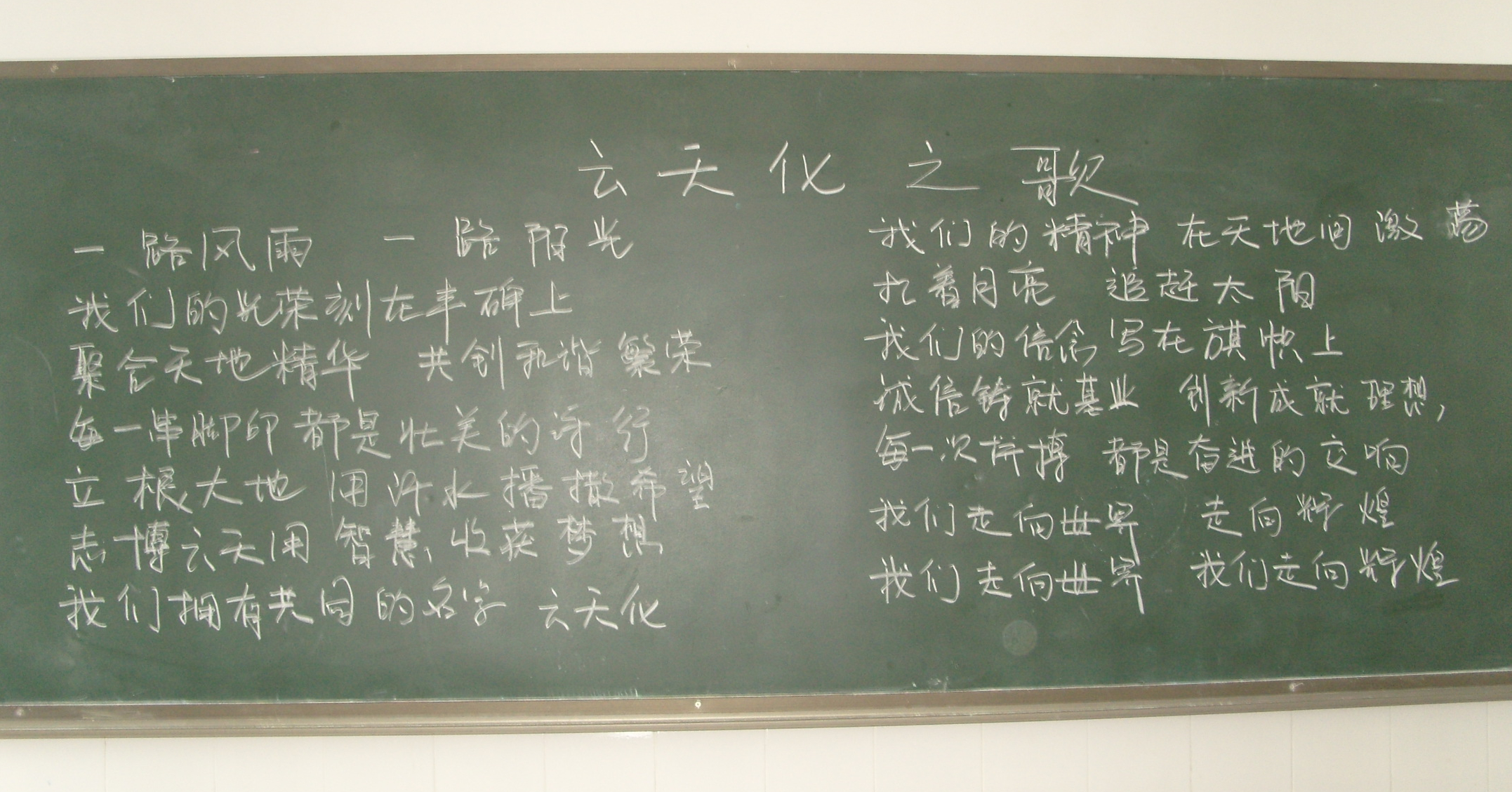 志愿者在各年级音乐课期间将《云天化之歌》等企业文化歌曲歌词先通过板书的方式书写在黑板上,并逐句教唱,当大家已经能够完整歌唱后再将笔记本电脑带到课堂上,播放原唱以及伴奏,引导学生们跟唱。不仅如此,志愿者还在每天下午放学后间歇播放上述歌曲,至此,《云天化之歌》已经让全校师生产生了积极共鸣,此举也获得了学校的肯定。