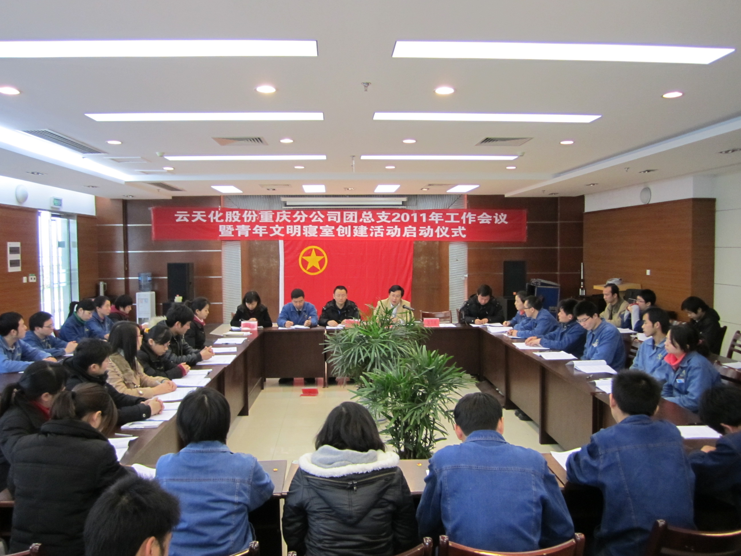 上午8:30,会议在全体人员齐唱《云天化之歌》中正式开始。会上,团总支书记陈果对分公司2010年开展的共青团工作作了总结,并对2011年的共青团工作作了详细的部署。随后,行政部冉太云为与会人员生动的讲解了新闻写作知识、要点和技巧。会上还启动了青年文明寝室创建活动。