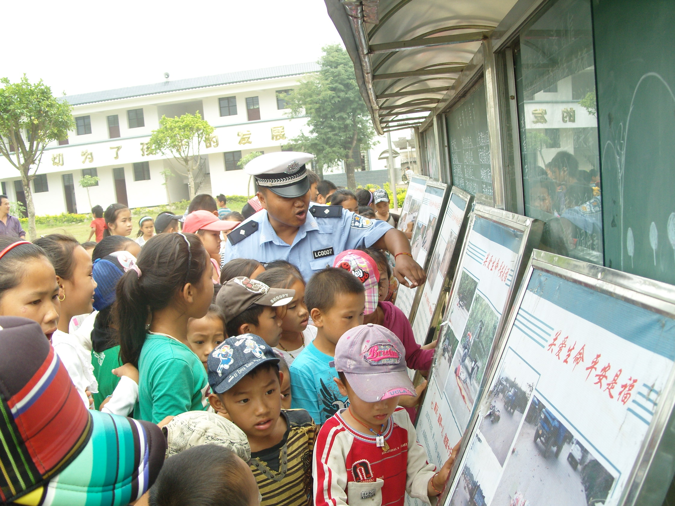 据了解,此次活动是由临沧市公安交通警察支队发起,号召全市交警部门为民众义务强化宣传交通安全知识,内容包括:交通法规教育、交通事故现场警示教育、机动车安全驾驶常识等。此次来到云天化河西希望小学的是耿马县孟定交警中队的干警们,他们采用流动宣传的方式,走村入寨,顶着炎炎烈日,不辞劳苦地为民众讲解、宣传交通安全知识。
