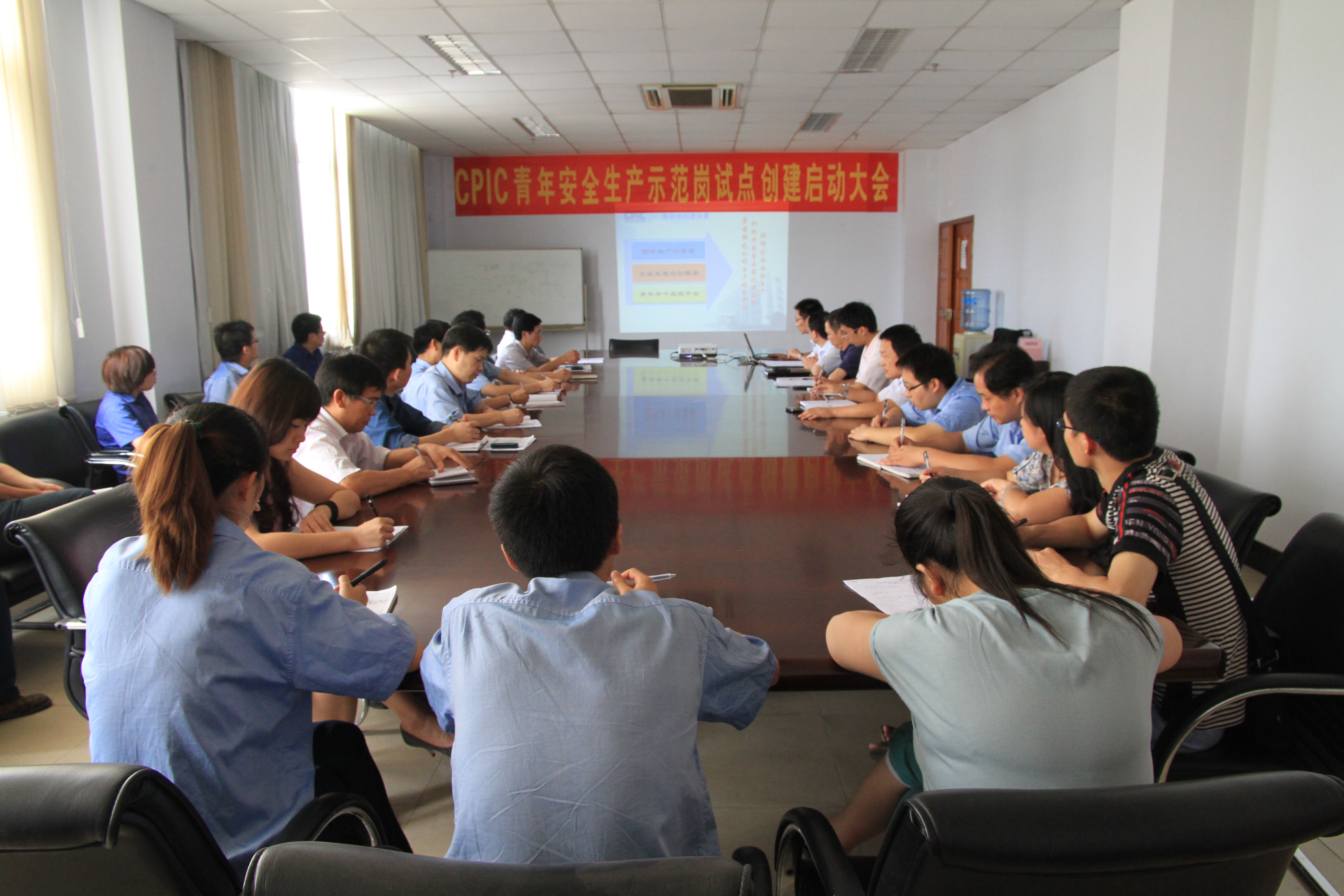 为全面贯彻集团、股份公司团委关于加强安全生产的精神,在广大青年员工中开展“青年安全生产示范岗”试点创建活动,全面推进公司安全生产工作在广大团员青年中的落实。7月18日11:00,CPIC“青年安全生产示范岗”试点建设启动大会在公司本部举行。副总经理杜迅、党委副书记余雁冰、前党委副书记陈忠东、党委工作部副部长潘向彬、安全环保部副部长朱英来和试点创建单位主要领导、所属申报创建集体主要负责人、团支部书记共30余人参加了启动仪式。