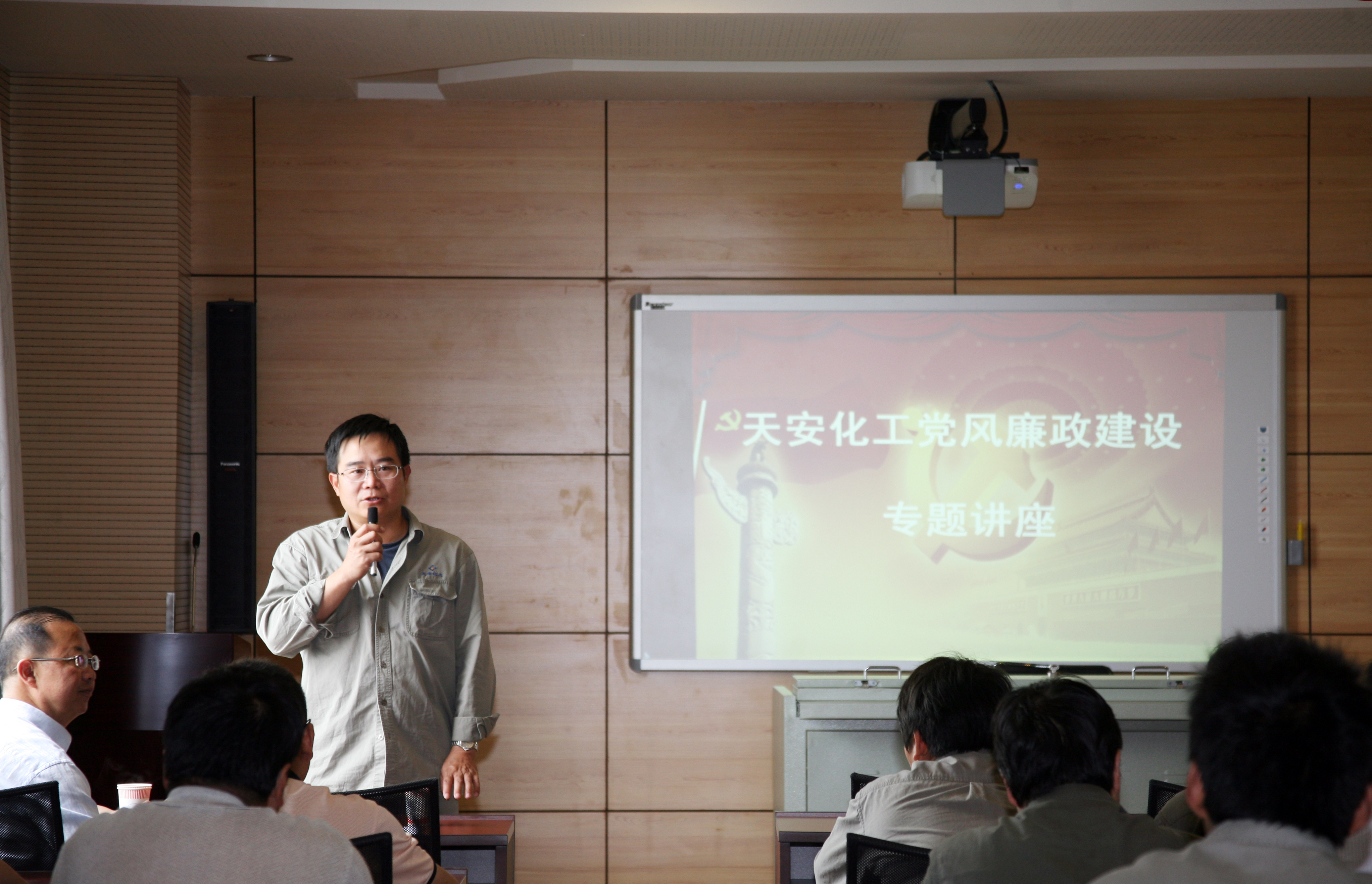 7月22日上午,天安化工党委举办了“2011年度党风廉政建设专题讲座”,讲座特邀集团公司监审部部长姜自力授课。公司领导、中干及21名青年重要管理岗位人员参加了本次培训。