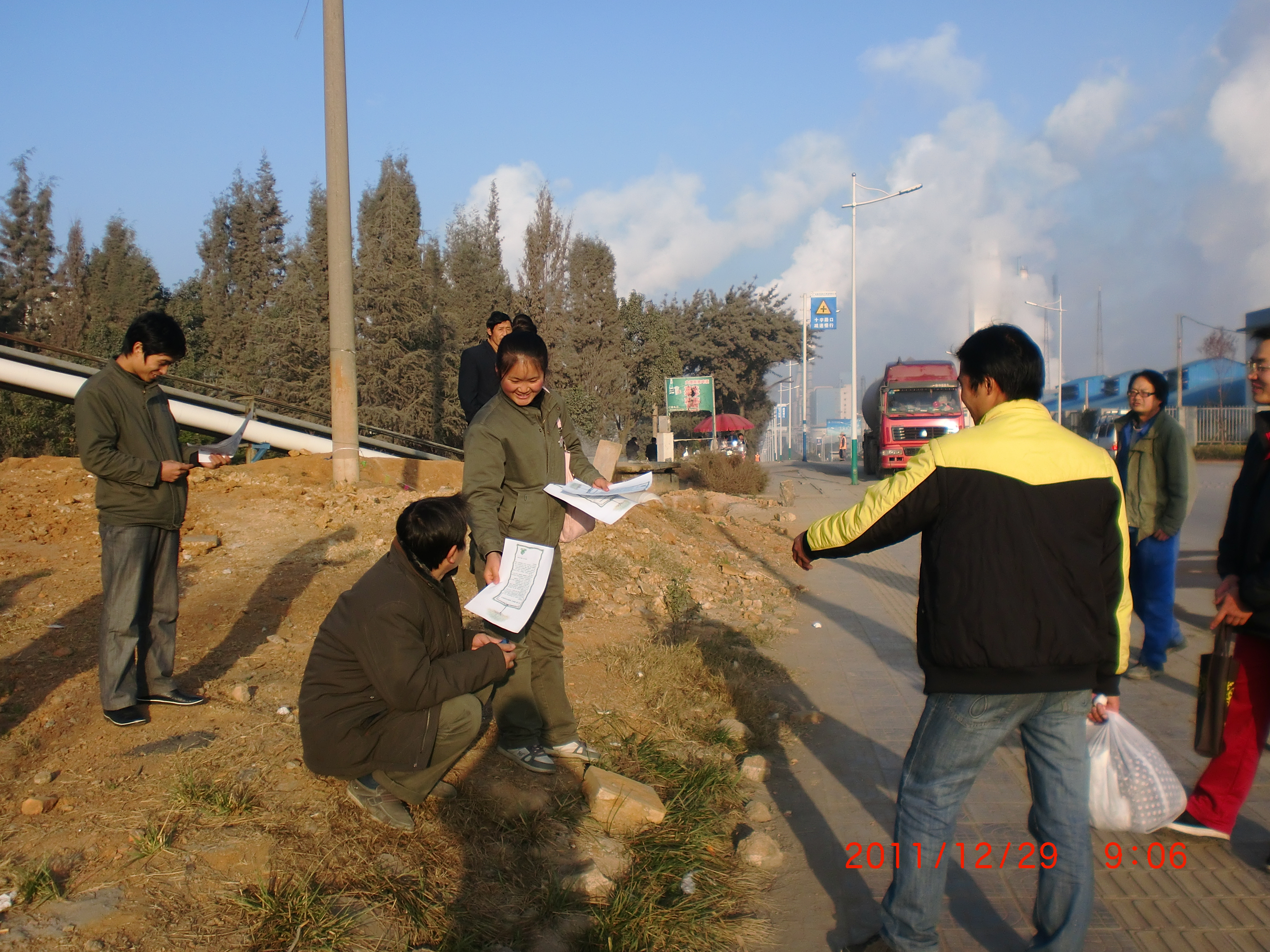 志愿者分为四个小组,佩戴着“天安化工青年志愿者”徽章,走进社区、走上街道。他们微笑着给同事们递上一份宣传单,热情地为大家介绍低碳的概念,传授给大家生活小常识,并对询问者进行耐心讲解,青年们的微笑服务和耐心解释,得到了大家的称赞。