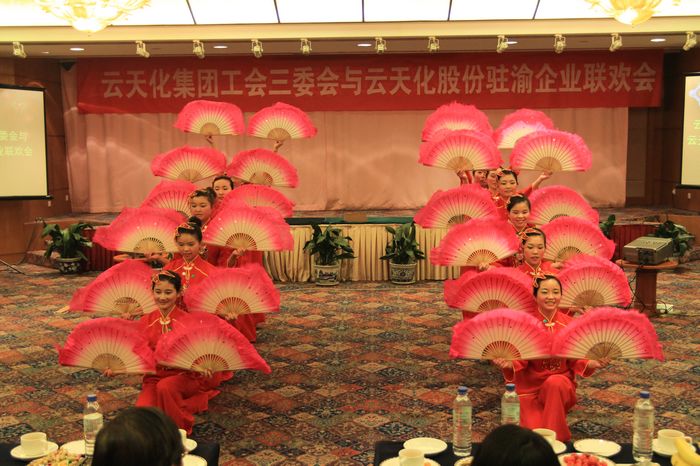 晚上8:00,宴会厅喜气洋洋,暖意融融。由CPIC团委承办的联谊晚会在各与会代表气势恢弘的“云天化之歌”合唱声中拉开了序幕。晚会的第一个节目“开门红”-----一群青春洋溢的少女,手托着象征事业兴旺,红红火火的红色灯笼,在热烈喜庆的歌声中载歌载舞,预祝云天化集团以及各分公司能在2012年取得开门红,利润节节攀高-----带动了全场的气氛,与会代表不遗余力地摇起了拍手板,晚会开初便达到了一个小高潮。