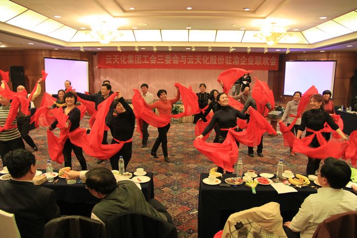 当现场响起《相聚云天化》那熟悉的旋律,联谊晚会已经接近尾声。这次联欢晚会,不仅仅是一个云天儿女才艺的展示良好平台,更是云天化企业文化交流和融合的有利契机。与会代表与云天化股份驻渝企业员工代表欢聚一堂,共叙友情。大家通过精彩的演出表达出真挚的祝福,向大家展示了云天化的团结力量和热血激情,共同祝愿云天化集团各项事业蒸蒸日上,再创辉煌。