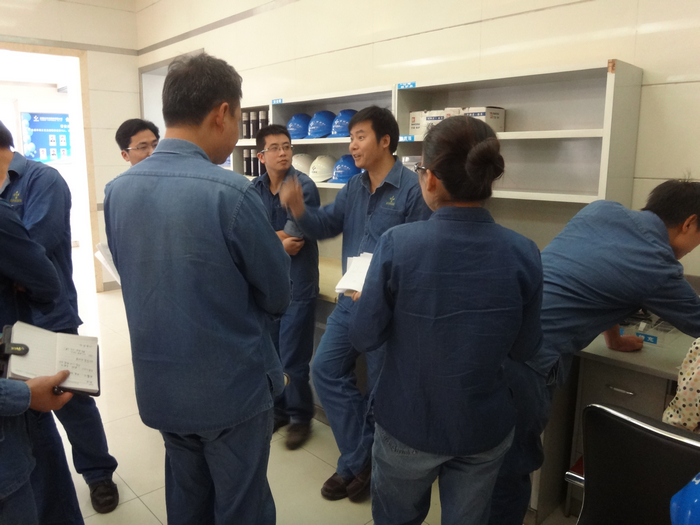 在验收工作开始之前,参与验收各部门进行了一个简单碰头会,明晰了各部门负责内容。14日下午,由公司团委、安环部、总经办三部门负责人组成现场验收小组开始验收工作。