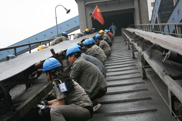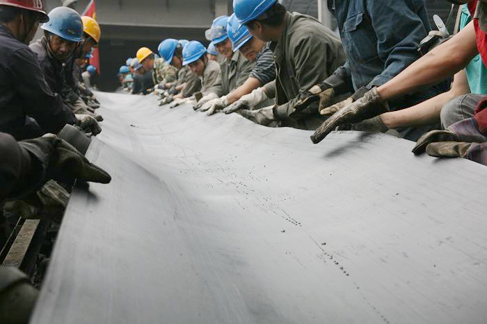 由于装置长周期连续运行,对皮带的磨损很大,必须及时更换。来自各个基层单位的20名团员青年迅速集中,顶着弥漫在空气中的粉尘,发扬云天化人吃苦耐劳的优良传统,随着检修车间师傅规律的哨子声,喊着“一二、拉!一二、拉!”的号子,干的热火朝天。为保证更换任务的快速、安全的完成,大家都拧成一股绳,明确分工,有条不紊地展开更换工作。大家用了不到一小时的时间,便完成了从新皮带的起吊,到新皮带的安装,再到旧皮带的拖出,完成了皮带更换工作。