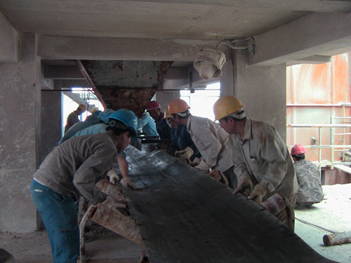 目前转鼓装置大修工作按原定计划积极推进,8月10日,按计划需要完成转鼓装置干燥出口输送皮带和两条原料输送皮带的铺设,其中原料输送皮带的长度分别是46.8m和52m,干燥出口输送皮带为30.3m。由于三条输送皮带与水平面存在15°左右的爬坡倾角,因此对皮带的铺设进程造成一定的困难,为了保证改造进程的顺利推进,团总支即刻组织青年突击队参与到输送皮带的铺设工作中,33名突击队员在检修现场,听从检修人员的统一指挥、团结协作、齐心协力完成了输送皮带铺设工作。