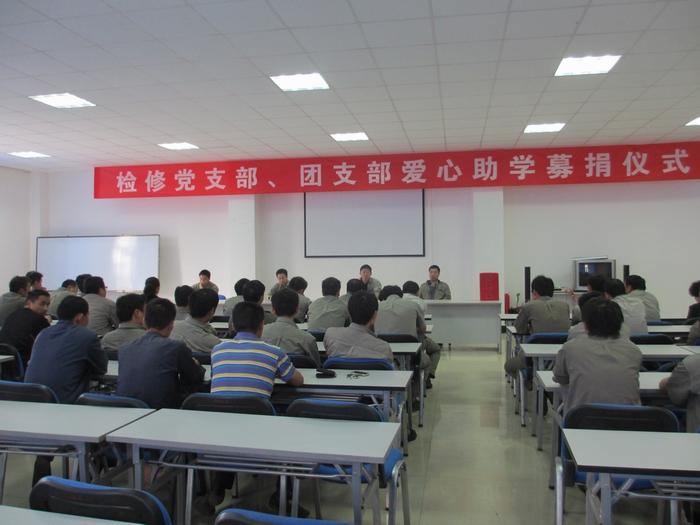 2012年9月5日下午13:30,在天安化工检修车间二楼大会议室里,由检修党支部、团支部倡导发起的助学募捐仪式如期举行着。