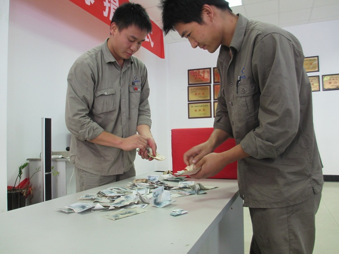 助学募捐仪式于下午1:30正式开始,由党支部书记邓奕主持。首先,邓书记向车间全体员工介绍了助学活动的由来、意义以及党支部的组成情况;接着,由团支部书记张小波宣读了倡议书,同时对两位受资助同学作了情况介绍;随后,由邓书记带头,与会员工一一走上前台, 20元、50元、100元……大家纷纷将自己的那一份爱心投进募捐箱,经统计,本次共募得爱心捐款2505元;特别值得一提的是车间四名劳务派遣用工均自发到现场捐款,从本来不多的工资收入慷慨拿出20元、50元,让人十分感动。“大爱无言、小爱亦贵”,大家都力所能及的献出自己颗颗炙热的爱心,这让每一位在场的人都深受感染。