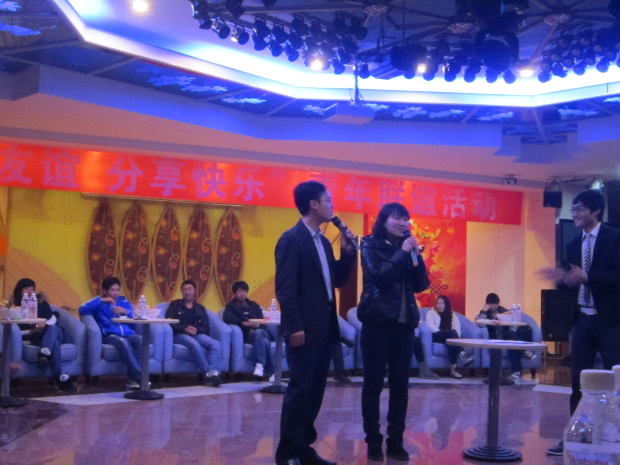 晚上7:30,青年联谊活动正式开始。活动中,主持人首先介绍了参加本次活动的嘉宾及各分子公司的青年朋友,股份本部青年朋友以热烈的掌声对他们的到来表示欢迎。接着进行了“寻找有缘人”、“击掌传花”、“快乐不N机”等游戏互动。“寻找有缘人”让大家对自己的“有缘人”充满了期待,在相互认识之后大家互留电话等联系方式,还一起献上了精彩的节目,更进一步拉近了彼此心与心的距离。随后,各分子公司的青年朋友还带来了自己团队准备的节目,吉他演奏、双人对唱、街舞、机械舞、现代舞等精彩纷呈,赢得了阵阵热烈的掌声。