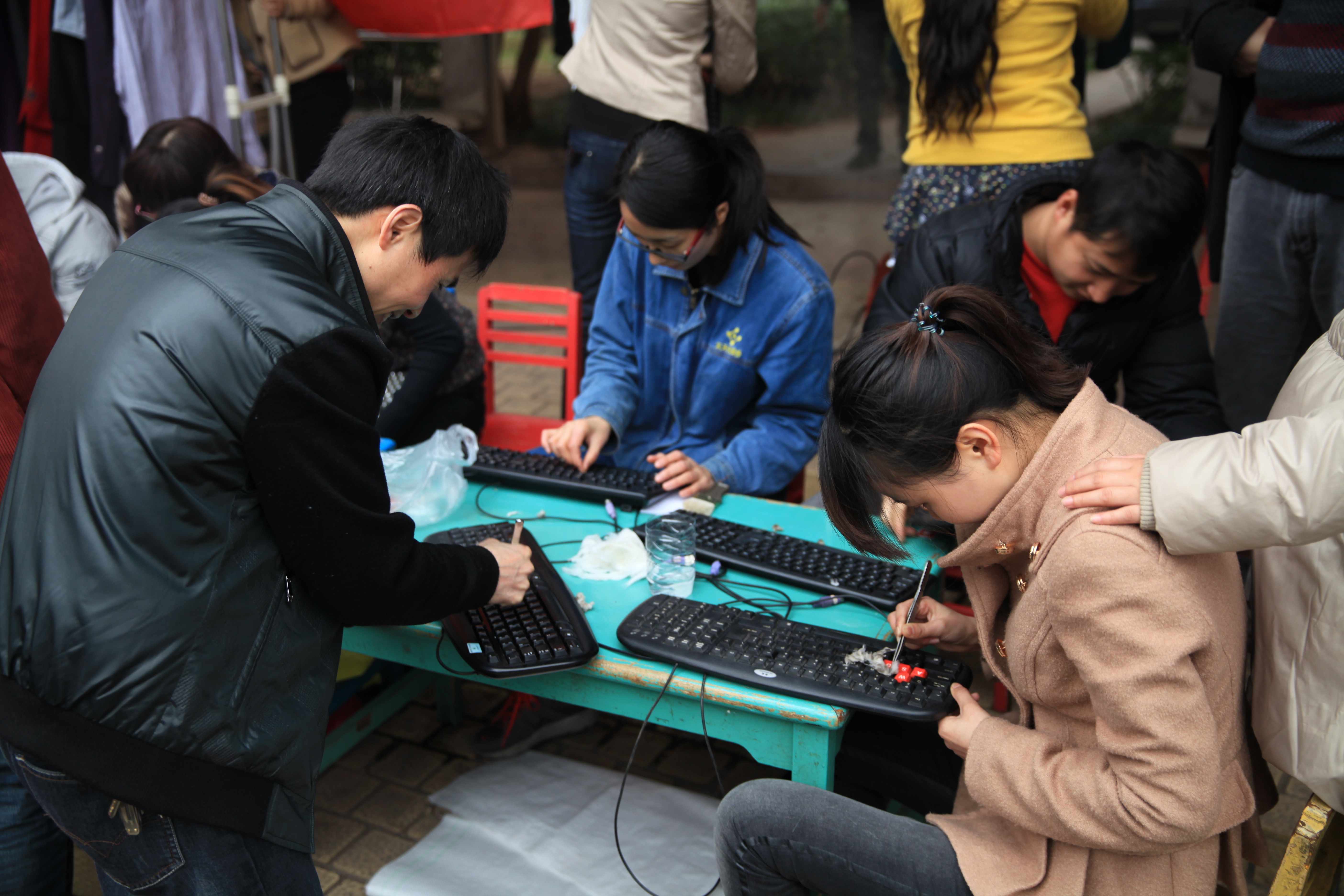 早上8:30,各单位的青年志愿者准时来到文化广场,在各自负责人的带领下开始在自己所在的服务区做服务项目的准备工作,他们有的负责挂团旗、有的负责搬座椅板凳,待一切准备就绪后,便民服务活动随即展开。今年的学雷锋活动在传承往年的爱心义诊、檫皮衣、皮鞋、洗键盘、磨刀、零钞兑换等品牌服务项目外,还创新开展了“倡导节约”志愿者签名活动、雷锋故事会、亲子游戏等服务项目。我们欣喜的看到,在每个服务项目前,都聚集着许多前来参与活动的员工及家属,他们当中除了有老人外,还有许多小朋友。整个活动现场被志愿者们快乐服务的身影和人们的满意的微笑装点着,美好而和谐的画面感染着现场的每一个人。