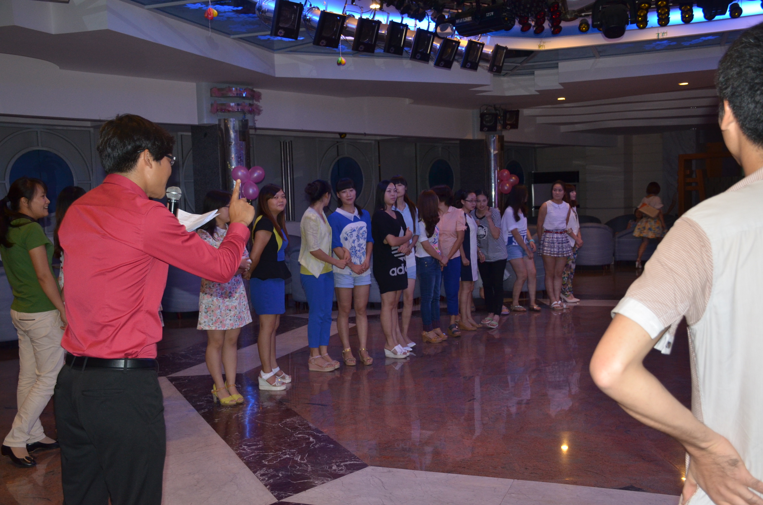 活动现场,轻松的音乐、闪烁的彩灯、粉色的气球为舞厅增添了几分浪漫与温馨。7:20开始,报名的男女嘉宾怀着喜悦和激动的心情,陆续来到了活动现场。活动于7:40正式拉开神秘面纱。开场环节是幸福大转盘,通过本环节轮替交换使彼此之间进行一个简短的接触交流。接下来 “虎克船长”心理游戏上演,嘉宾自由组合分成几个小组,在工作人员的带动下开展本环节游戏,游戏中,各位嘉宾已完全进入到了派对活动状态,大家激情高涨,现场一片欢腾。经过基本的熟悉和了解后,主题活动进入到“开心交友DIY”环节,本环节中男女嘉宾可根据要求自由选择参与游戏、唱歌、跳舞、聊天、棋牌等自由交友形式。经过前面的热身,大家都很放松,积极参加游戏,主动点歌、唱歌,聊天聊得很投缘。