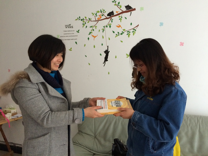 下午2:30,由公司团委李书记带队的颁奖组来到首次获“二星级寝室”的2805号寝室,该寝室的成员均是来自云天化中学的老师,当颁奖组将一盆枝繁叶茂、寓意吉祥的“平安树”送到寝室时,李书记还亲自将名字为《正能量》的书籍颁发给寝室的每一位成员,寝室成员表示这样的奖品既让她们感觉很惊喜,更感觉很贴心。紧接着,李书记带队走访了每一间获奖的寝室,并依次将星级奖牌、绿色盆栽、励志书籍以及获“晒家•赛爱”寝室美化大赛的奖金送到了相应的寝室,大家一致表示对这份贴心的奖品特别喜爱。每到一处,李书记都详细询问单身青年的生活、工作状况,叮嘱大家注意冬季用电用气安全,也勉励各寝室成员再接再厉,继续维护好“星级文明寝室”的创建成果。