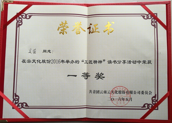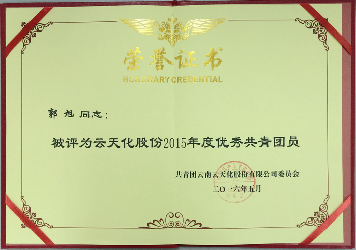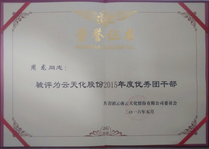 表彰会上,水富云天化第一联合支部(原尿素团支部)、金新化工生产运营中心团支部荣获2015年度股份“先进团支部”称号;水富云天化团委委员周龙、金新化工设备管理中心团支部书记肖月荣获2015年度股份“优秀共青团干部”称号;水富云天化团委委员罗会玲、东明矿业水文地质技术员郭旭荣获股份2015年度“优秀共青团员”称号;水富云天化化肥车间武满红荣获股份2015年度 “青年岗位能手”称号;金新化工检修维护腾文军荣获股份2015年度 “青年岗位能手”提名奖。