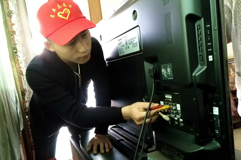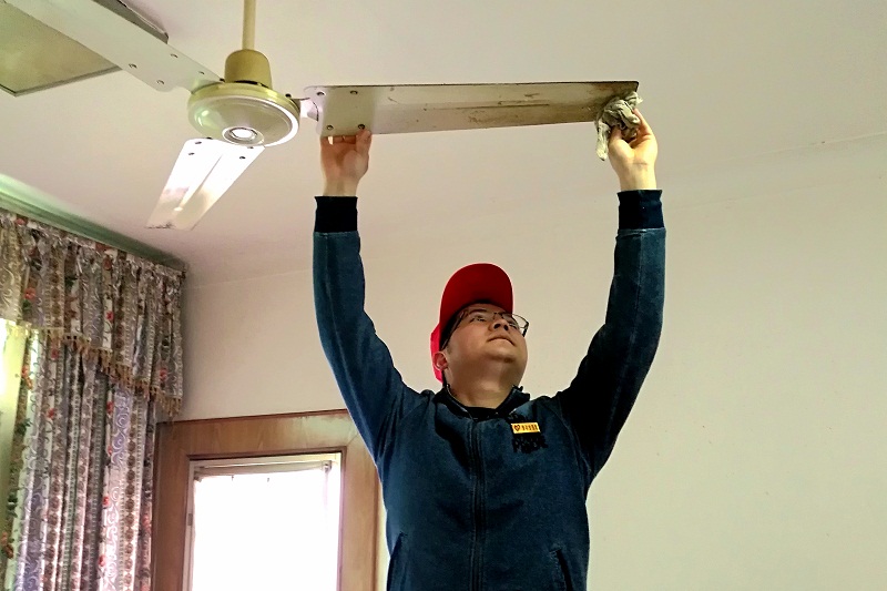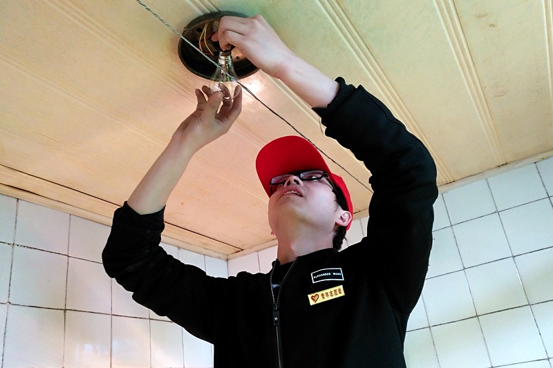 经过一番交流,了解到申爷爷家中厕所和洗漱间的灯都坏了,电视信号也时常不好,吊扇也积灰较重。得到任务后,志愿者们便分工开做,搬梯换灯,上凳擦扇,调整电视信号等。申爷爷看见大家做事认真、仔细,在旁边说到,想不到现在的年轻人做事还是跟他们以前一样把细,手上活还行。我们说:“这也是您们一代代云天化老前辈传下来的优良传统,我们也不能丢了”。顿时整个屋子大家都会意的笑了。