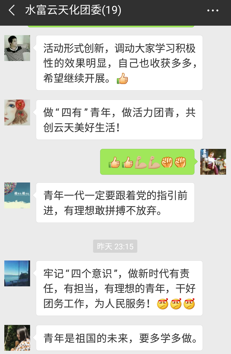今年8月,自共青团中央“青年大学习”网上主题团课开课以来,水富云天化团委积极响应号召,关注公众号自主进行学习,并在8月31日组织团员青年、基层团干开展了一次集中学习。