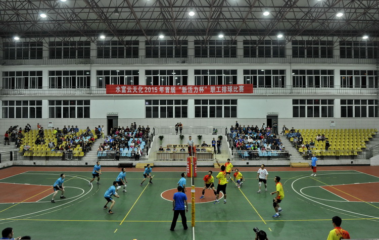 当晚的公司体育馆内灯火通明,热闹非凡,呐喊助威声不绝于耳。7时,男排决赛率先火爆上演。连续多场比赛过后,参赛队员在决赛前已经将状态调整到最佳,开场后,双方迅速进入状态,有着明显身体优势的云天化中学取得领先,而传统强队物资部男队凭借着丰富的经验稳住阵脚,将比分紧咬,但云天化中学还是通过多次有效强攻,以25:20的比分拿下第一局。易地再战,双方失误开始增多,发球出界、扣球下网、扣球出界等失误时有发生,但云天化中学依然是实力占优的一方,他们稳稳控制比赛节奏,通过一次次有效进攻逐渐将比分拉大,最终以25:11、25:14再下两城,以3:0的总分战胜物资部男队,勇夺男排桂冠。