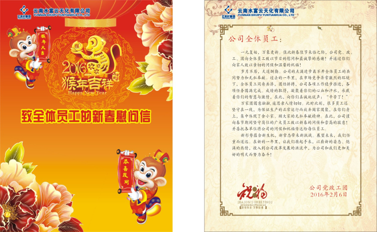 公司领导的声声祝福,殷殷嘱托,如春风化雨,滋润着大家的心田,让员工们倍感温馨和鼓舞,进一步激发了大家奋发努力的工作热情,力争在猴年再创新业绩。