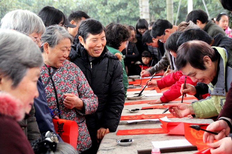 “迎新年•鼓干劲”拔河比赛拉开迎春系列活动的序幕。继拔河比赛后,1月17日上午,公司下沉式广场墨韵飘香,10余名公司职工书画协会的爱好者现场即席挥毫,为职工及家属免费书写一幅幅充满美好祝愿的对联。活动现场人头攒动,人们精心挑选着自己喜爱的春联内容,希望来年吉祥如意;拿到春联的人们,则小心翼翼从人群中挤出来,找个地方把春联晾干。一位阿姨挑选了“一帆风顺年年好 万事如意步步高”对联,高兴地说:“我已经是第三年来拿春联了,他们的字写得很漂亮,春联内容我也很喜欢!”短短一个上午,活动就送出春联近800副。