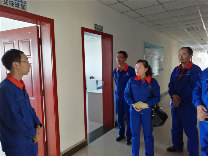 在公司工会副主席付伟的陪同下,常敏一行先后到访制醇车间、综合管理部和党群工作部,与单位领导、业务骨干及部分“六型”班组先进示范班组长就质量管理、安全体系、六型班组建设和党建台账等工作展开了深入的交流探讨,并实地参观了解班组小家建设、台账管理、班组文化建设等情况。现场交流气氛热烈,大家畅所欲言,相互解疑释惑,取长补短,共同提升班组管理水平。