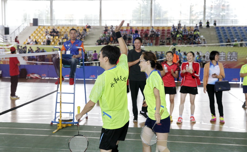 本届职工运动会上,水富云天化代表团运动员人数较上届运动会相比大幅缩减,在参赛运动员少,参与项目多的情况下,“兼项”在所难免,提到“兼项”一词,水富云天化“全能达人”朱明令人印象深刻,本届运动会上,朱明共报名参加羽毛球、乒乓球等五个项目,由于赛事安排紧锣密鼓,多次往返于各个赛场已经成为家常便饭,一项比赛结束,他要马不停蹄,快速奔赴另一个赛场,体力成为他面对比赛的最大考验,21日决赛阶段的赛程更加密集,同一天上午,朱明要在三个小时内,参加5场比赛。在经历了乒乓球单打、羽毛球双打决赛、混双半决赛、乒乓球双打半决赛等项目后,朱明的体力几近透支,却依然坚持比赛,在最后一项羽毛球混双比赛中,他与伙伴刘颖打出默契配合,最终战胜对手,夺冠后已经明显站立不稳的朱明,与队员掏拥抱在一起,这一幕让人感动,更令人由衷的敬佩。两枚金牌,一枚铜牌,这是一位44岁的老将交出的答卷,坚韧的意志,顽强的精神,“全能达人”赢得了荣誉,赢得了喝彩。