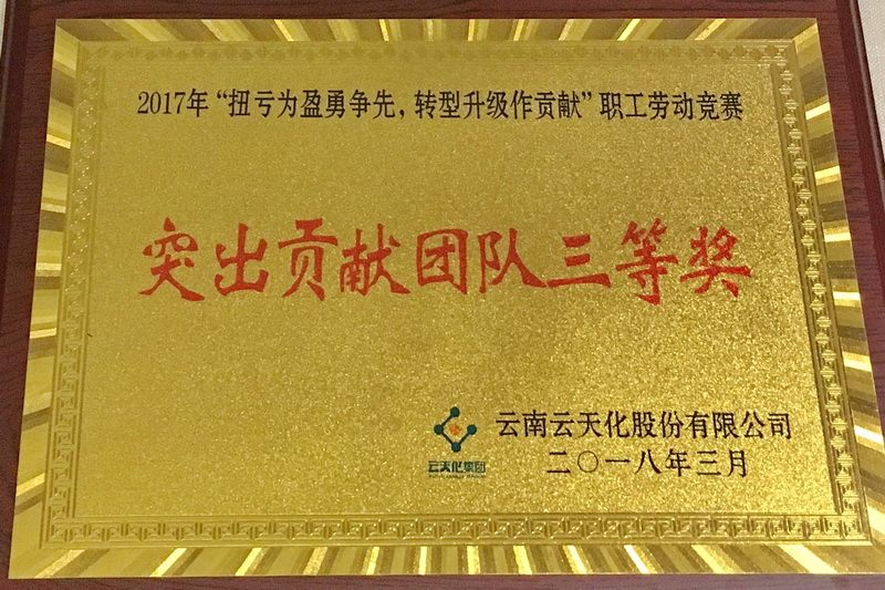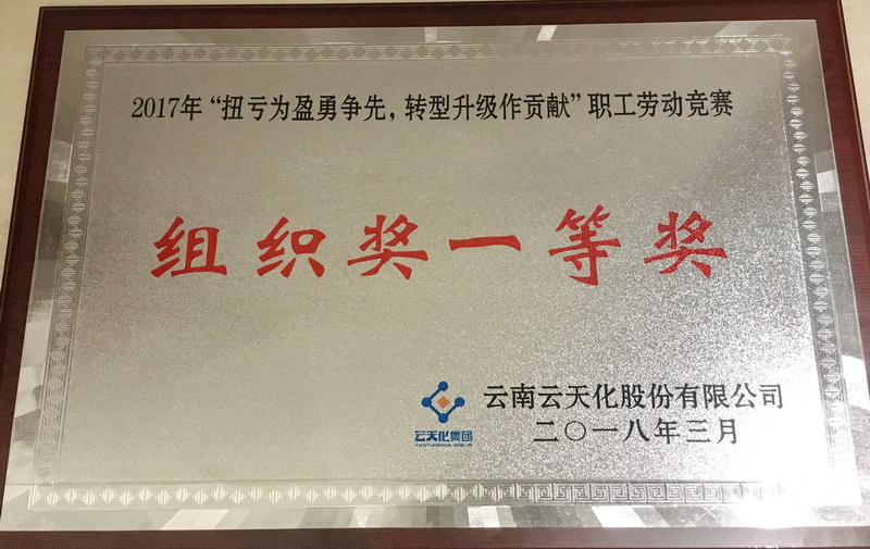 3月9日,云天化股份工会2017年劳动竞赛总结暨2018年劳动竞赛启动会议在昆明召开,会议对云天化股份2017年劳动竞赛优秀组织奖、突出贡献团队、优秀成果奖进行表彰,公司工会蝉联大赛优秀组织奖一等奖,并荣获突出贡献团队三等奖,5个项目荣获优秀成果奖。