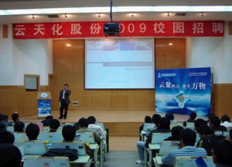 2008年10月22日,在云天化股份公司副总经理段文瀚的带队下,由云天化股份本部及各分、子公司人力资源管理人员组成的招聘团队,在华中、华东、东北、西南等片区的定点、重点高校的校园招聘活动火热登场。