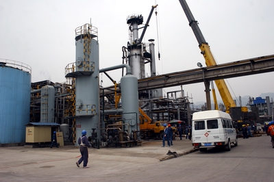 据了解,3月29日天鸿公司已经展开了合成塔顶部换热器122-C的拆除工作,以便用内窥镜检查合成塔中心管及第二层催化剂内收集器,对塔内情况作进一步确认。据大修指挥部介绍,目前合成塔检修工作整体进展顺利,如果没有其他情况发生,内件检查和修复、回装工作预计将于4月8日左右结束。