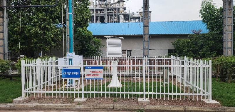 此次建成投运的气象监测系统为六要素自动气象站,安装地点位于园区磷酸铁锂中试厂房和两万吨聚甲醛装置之间的空地。该气象站集温度、湿度、雨量、风向、风速、气压六项要素的实时监测于一体,能够全天候、自动化采集和传输气象数据,形成连续、可靠、精准的监测体系。通过科学布点和合理设计,气象站能够覆盖园区关键区域,为生产运行和应急管理提供有力的数据支持。