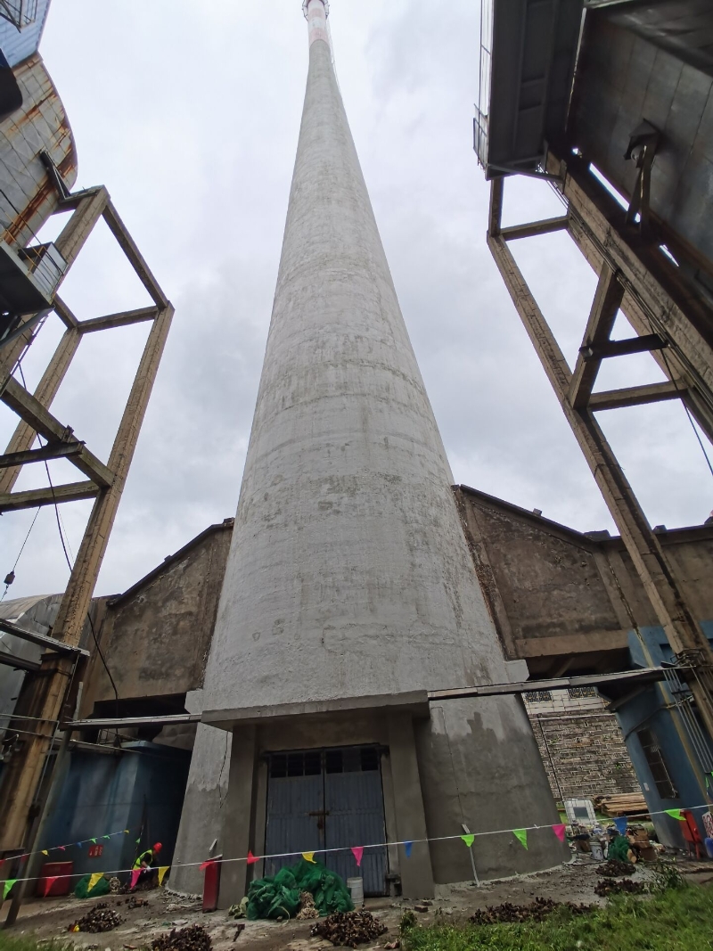 供热烟囱作为公司厂区内重要构筑物,总高130米,始建于1999年,2000年4月与供热锅炉同步投用,距今已使用25年。2025年,经专业评定,其可靠性等级为三级,存在筒壁裂缝、异物渗出、内部防腐层损坏及预埋件锈蚀等问题,有一定的安全风险。公司特成立供热装置烟囱加固修复专项工程项目,强化烟囱安全牢固性。