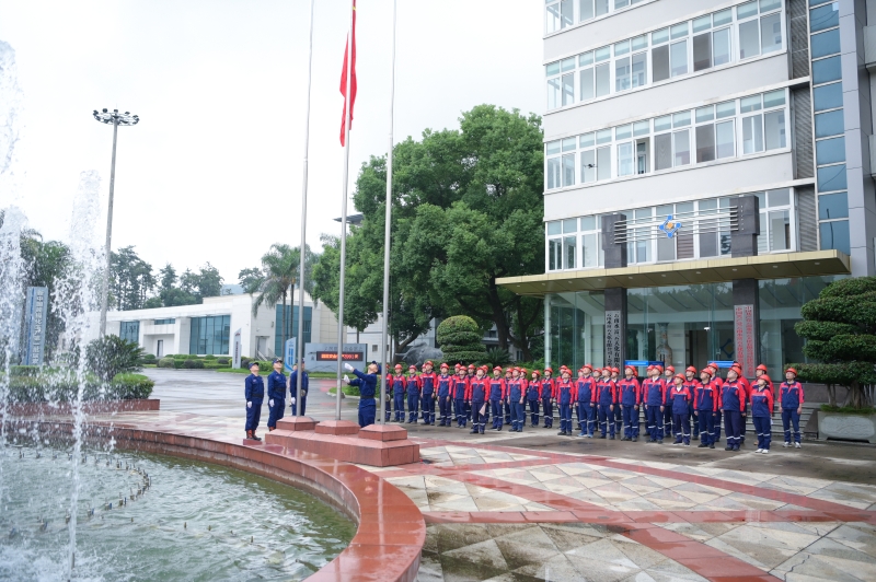 10月1日上午,公司在厂区举行升国旗仪式,庆祝中华人民共和国成立76周年。公司领导班子成员、党员代表、职工代表及国庆期间坚守岗位的一线员工共40余人整齐列队,以庄严仪式向祖国致敬,抒发爱国情怀,激发奋斗豪情。