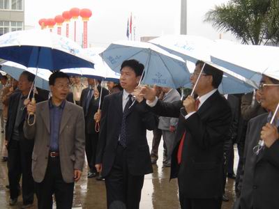 参加完10月4日上午的庆祝大会后,冒着绵绵秋雨,老领导和来宾们到公司生产区及云天化中学进行了参观。