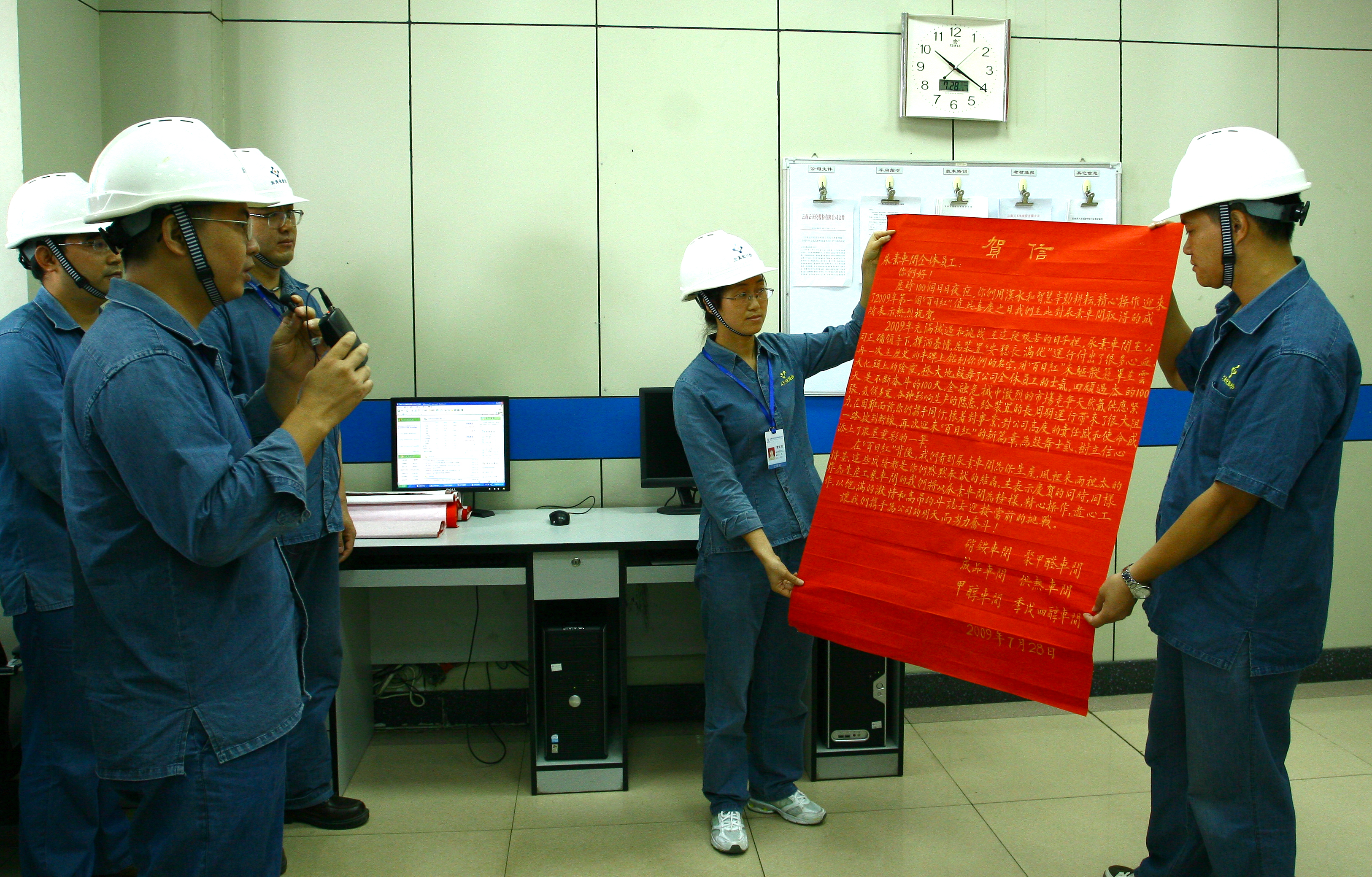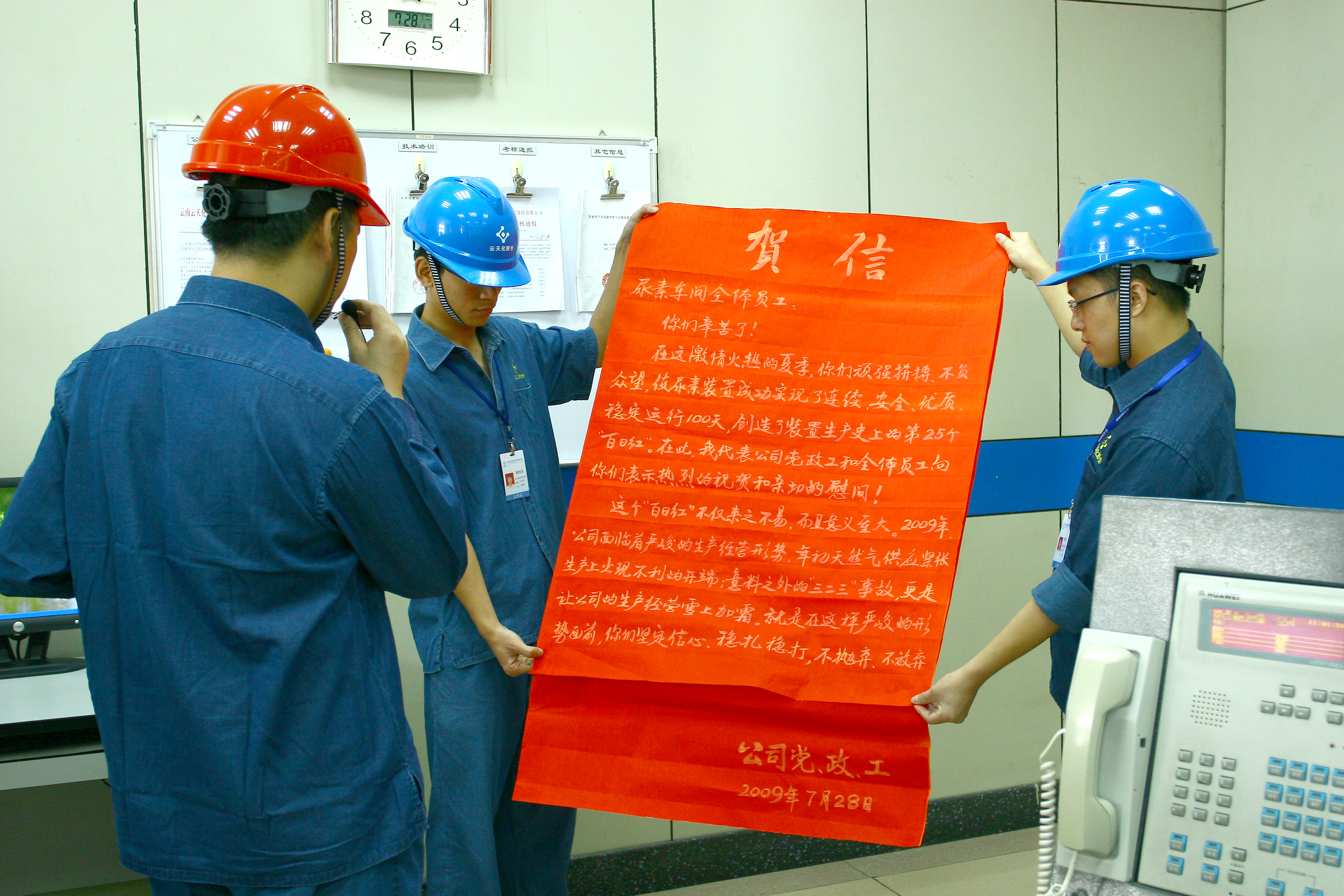 有机、硝铵、供热、成品、制水等生产车间代表宣读贺信