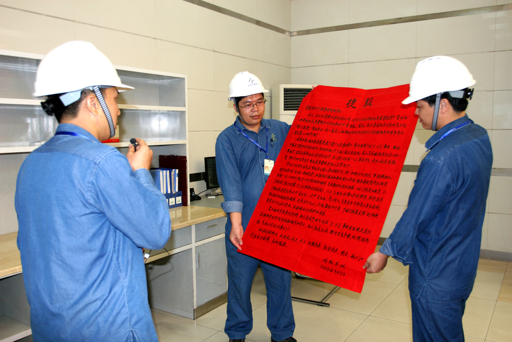 在欣闻股份公司合成装置安全连续运行100天,取得了09年的首个“百日红”后,集团公司党政工团从昆明发来贺信,表示热烈的祝贺。贺电中,集团公司在充分肯定公司生产经营所取得成绩时,也希望股份公司继续加强企业安全生产管理和装置的维护运行。同时把学习实践科学发展观活动与应对国际金融危机有机地结合起来,认真总结成功的经验,找出存在的不足,进一步做好企业生产经营的各项工作,努力化危为机,为集团的发展做出更大的贡献。