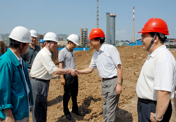 视察完生产现场后,张嘉庆一行头顶烈日前往公司水富煤代气技改项目施工建设地。看到有条不紊的施工场景和部份已完成的建设,张嘉庆十分高兴,对各施工建设人员所做出的成绩给予赞许。随后,张嘉庆一行还在煤化工项目指挥部详细听取了项目情况的汇报。