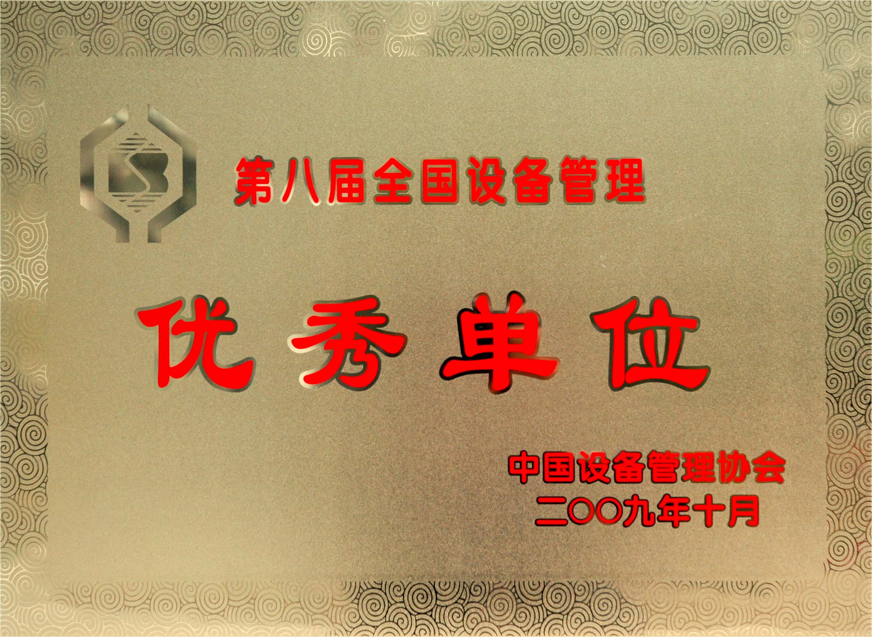 10月15日,中国设备管理协会发文(中设〔2009〕45号)表彰全国设备管理优秀单位,公司荣获“第八届全国设备管理优秀单位”荣誉称号。