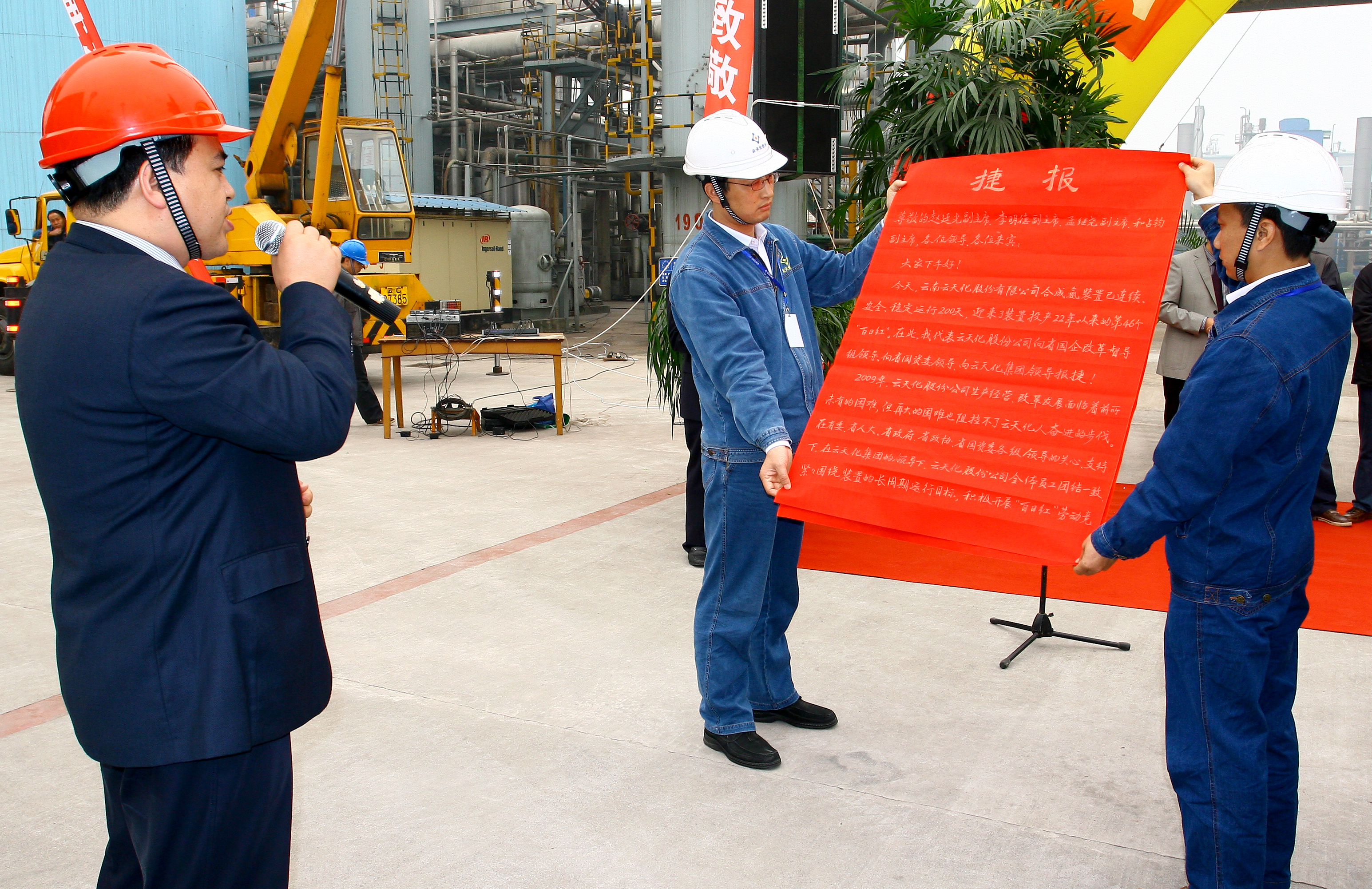 今年公司克服了金融危机、天然气供应紧张及3.23事故的重重考验,以云天化人不畏艰难的毅力取得了这个来之不易的200天。这个200天不仅为股份公司今年生产经营任务的完成打下了坚实的基础,同时也为集团公司的整体效益做出了巨大的贡献。集团公司副总经理朱明松代表云天化集团向股份公司全体员工表示热烈的祝贺。