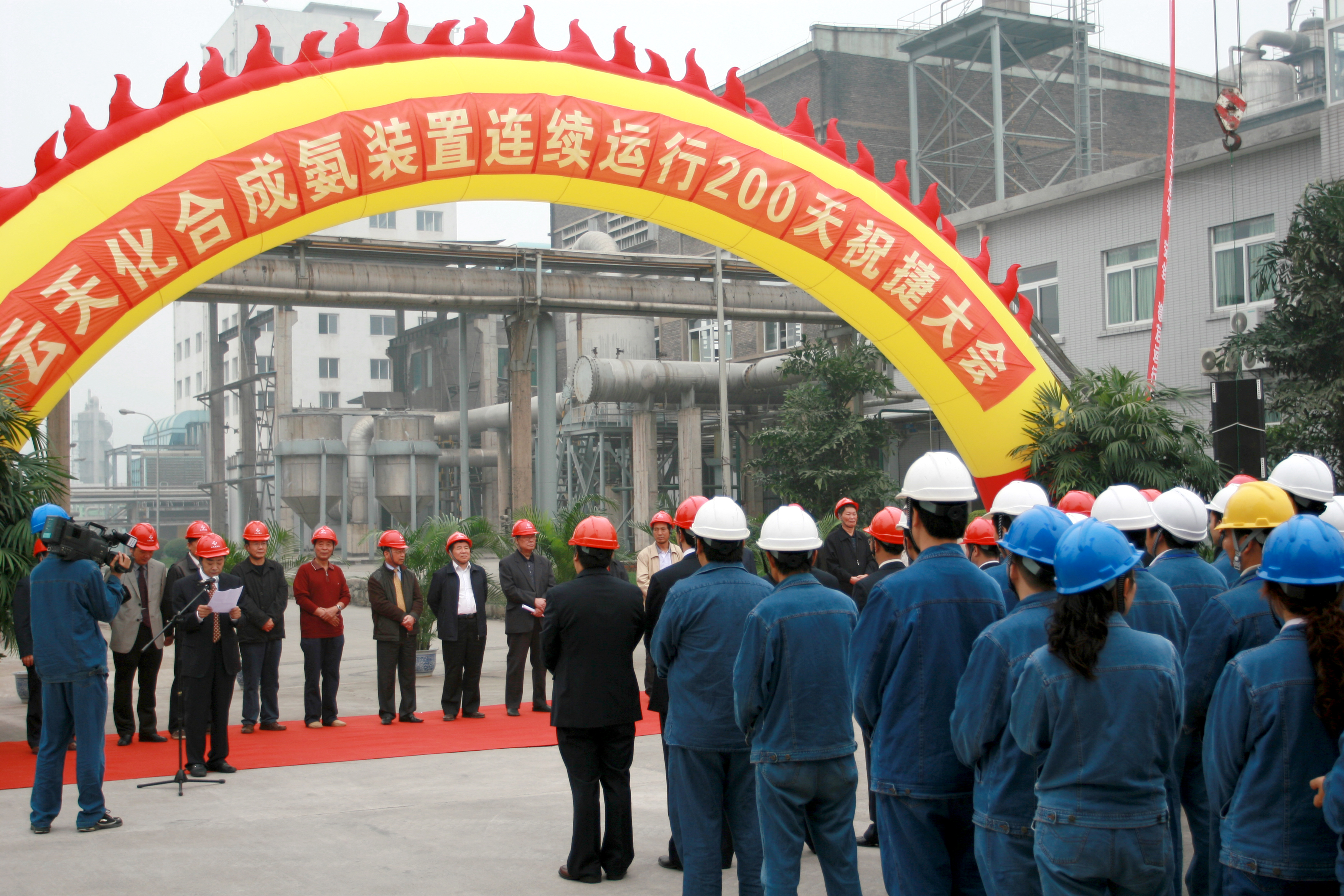 11月11日,公司合成氨装置成功实现了连续安全运行200天。喜讯传来,公司上下欢欣鼓舞,共同前往合成车间进行祝贺。前来公司调研的云南省国企改革督导组领导及集团公司领导也参加了祝捷庆典,共同见证这一辉煌的时刻。