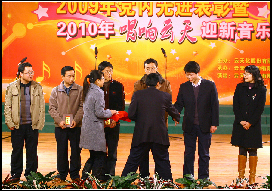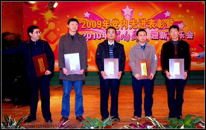 伴随着激昂的乐曲,获得2009年度优秀企业文化宣传工作者、年度优秀共产党员、年度优秀党务工作者、年度进步最大党支部和年度优秀党支部的先进个人和集体走上领奖台,接受颁奖。